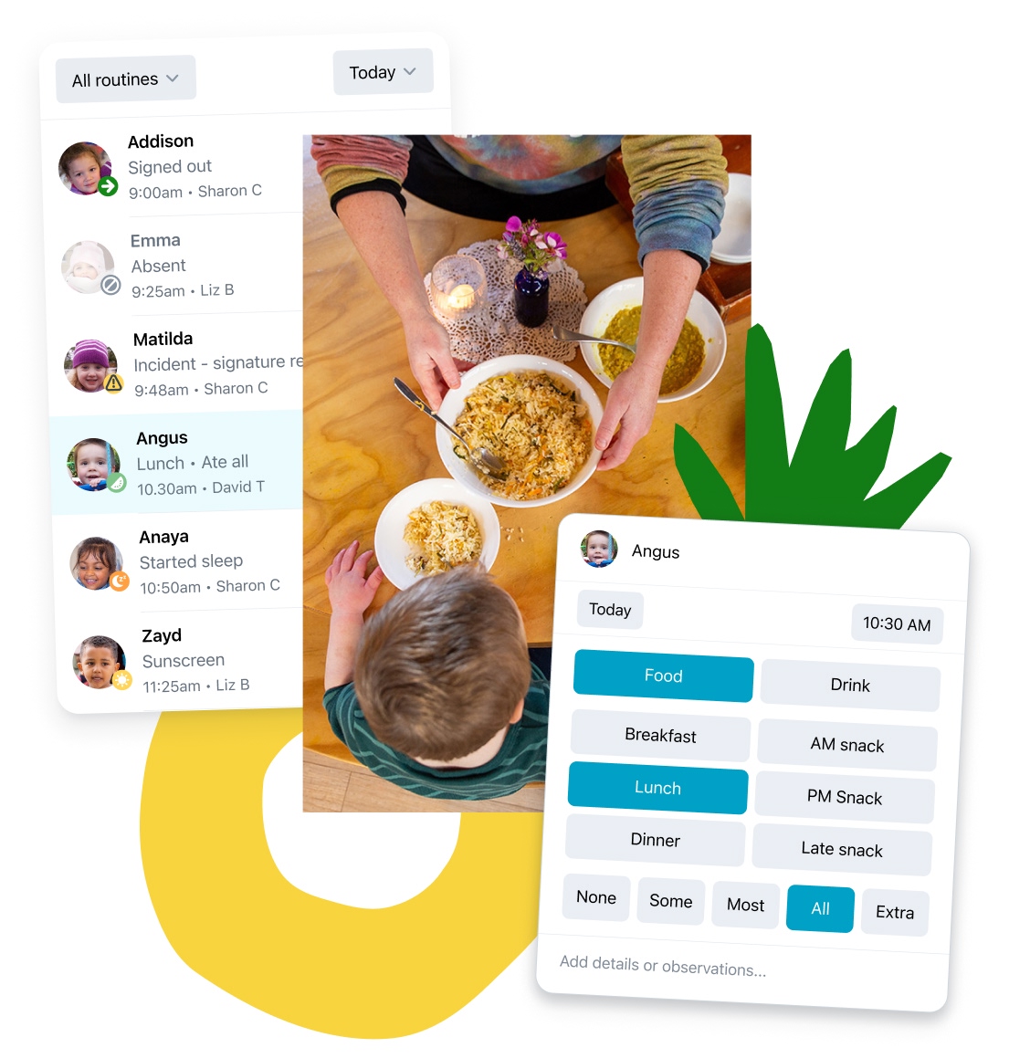 Keep a record of important activities to ensure children’s wellbeing and maintain compliance. Help parents feel connected throughout the day and make informed decisions when their child gets home.